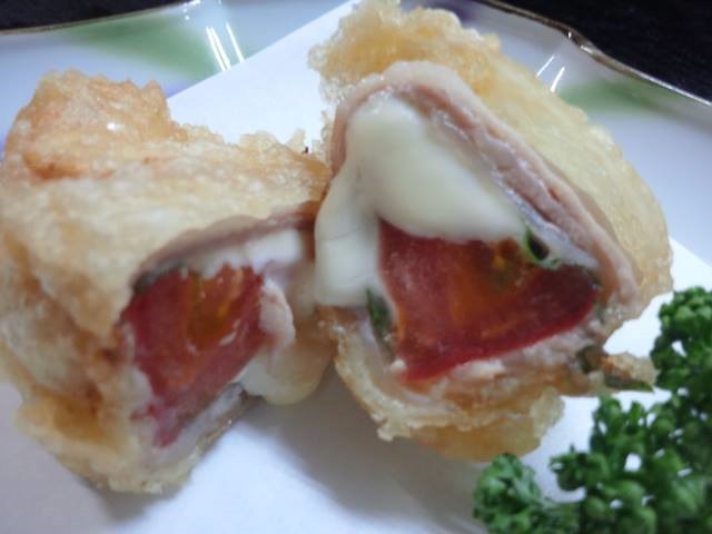 長崎県産トマトをチーズと豚バラ肉で包みました。
